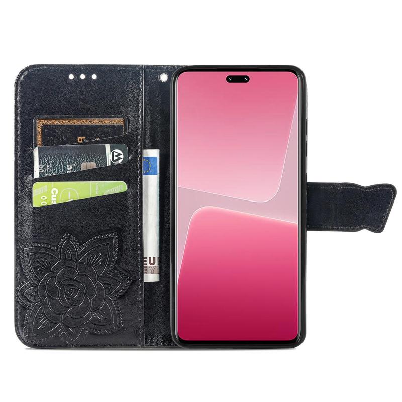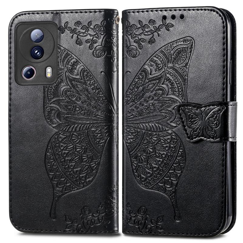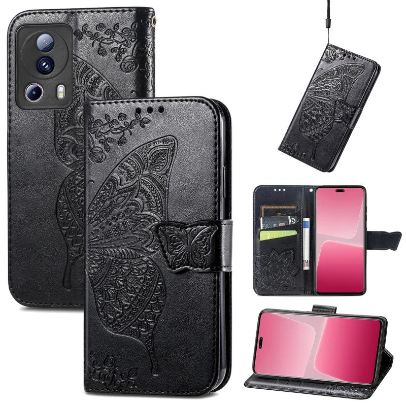 For Xiaomi 13 Lite Butterfly Love Flower Embossed Leather Phone Case(Black)