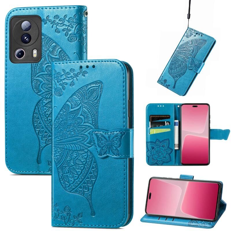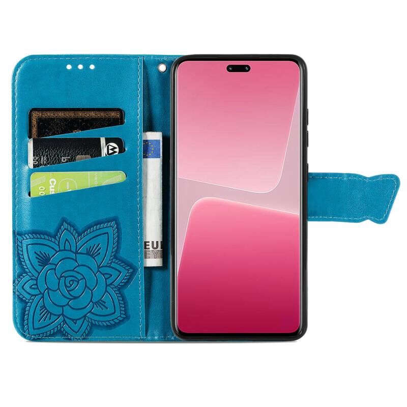 Θήκη τηλεφώνου δερμάτινη ανάγλυφη με σχέδιο πεταλούδας και λουλουδιών για Xiaomi 13 Lite (Μπλε)