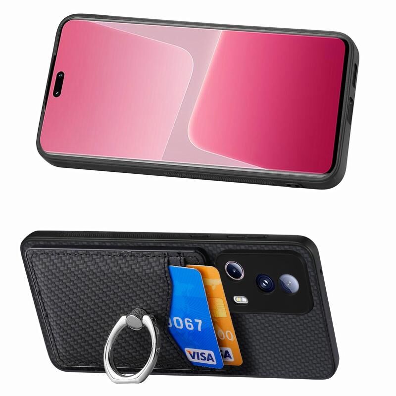 Για Xiaomi 13 Lite Carbon Fiber κάρτα πορτοφόλι δαχτυλίδι κάτοχος θήκη τηλεφώνου (Μαύρο)