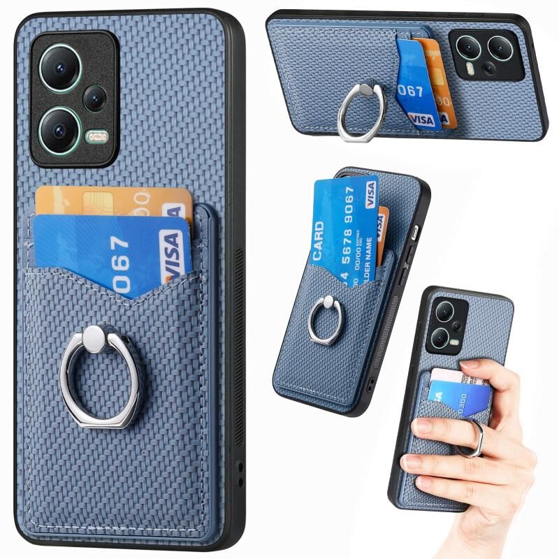 Για Xiaomi 13 Lite Carbon Fiber κάρτα πορτοφόλι δαχτυλίδι κάτοχος θήκη τηλεφώνου (μπλε)