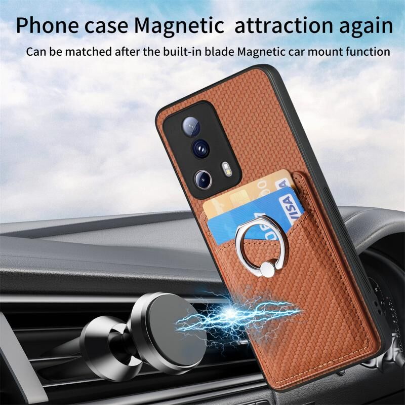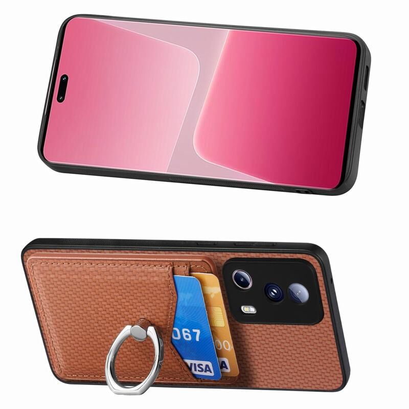 Για Xiaomi 13 Lite Carbon Fiber κάρτα πορτοφόλι δαχτυλίδι κάτοχος θήκη τηλεφώνου (καφέ)