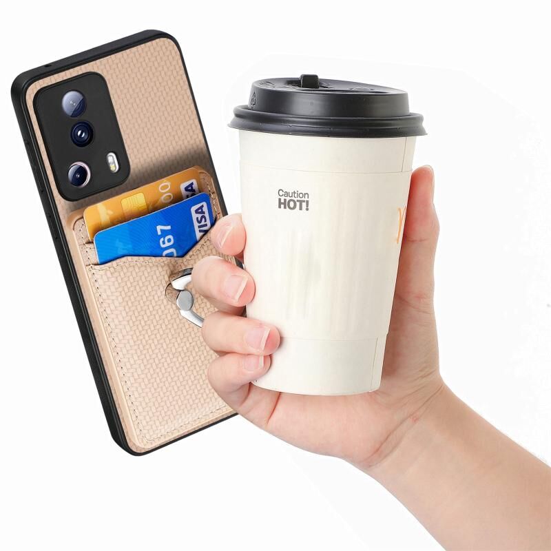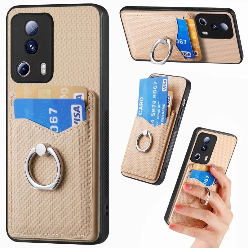 Για Xiaomi 13 Lite Carbon Fiber κάρτα πορτοφόλι δαχτυλίδι κάτοχος τηλέφωνο υπόθεση (χακί)