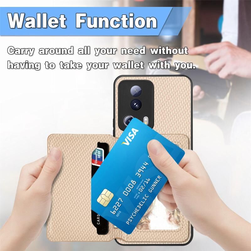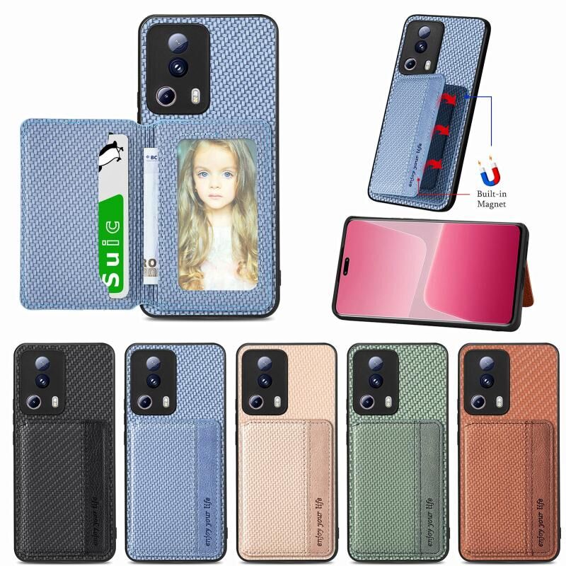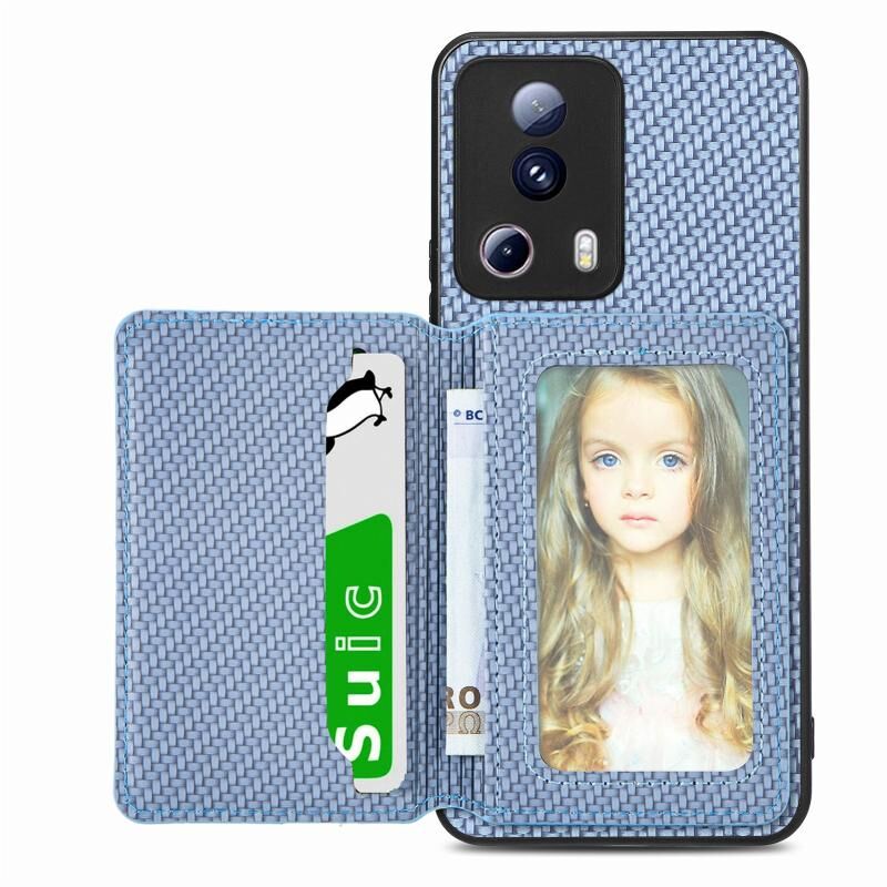 Για Xiaomi 13 Lite Carbon Fiber μαγνητική κάρτα τσάντα υπόθεση τηλεφώνου (μπλε)