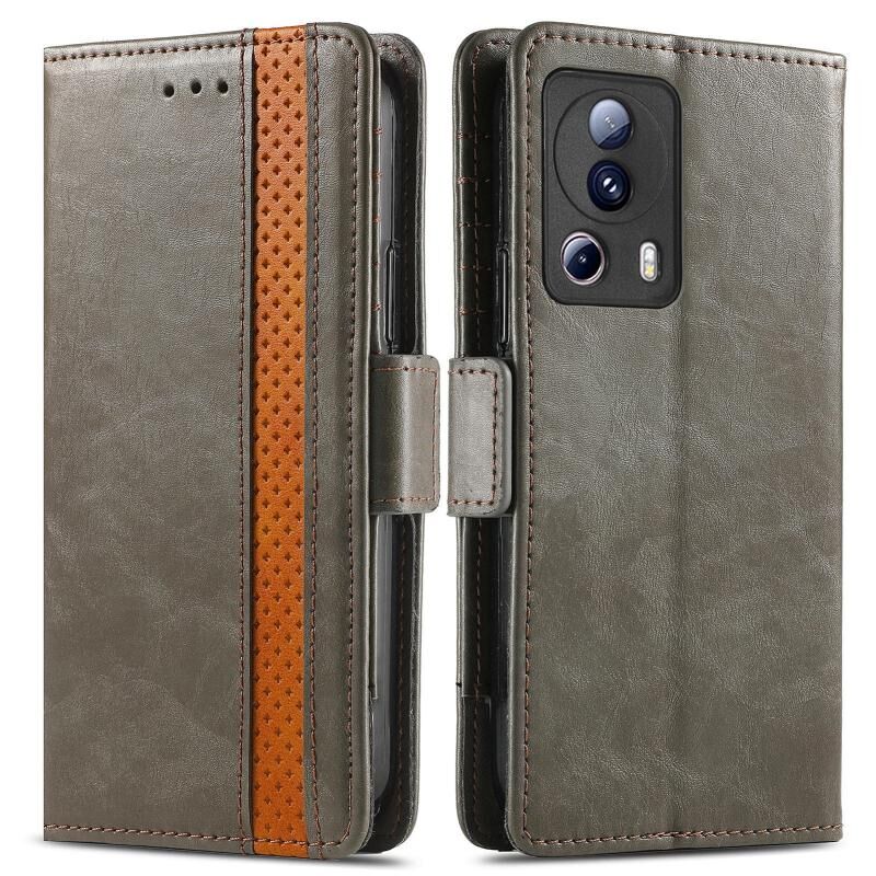 Για Xiaomi 13 Lite CaseNeo Splicing Διπλή μαγνητική πόρπη δερμάτινη θήκη τηλεφώνου (Γκρι)