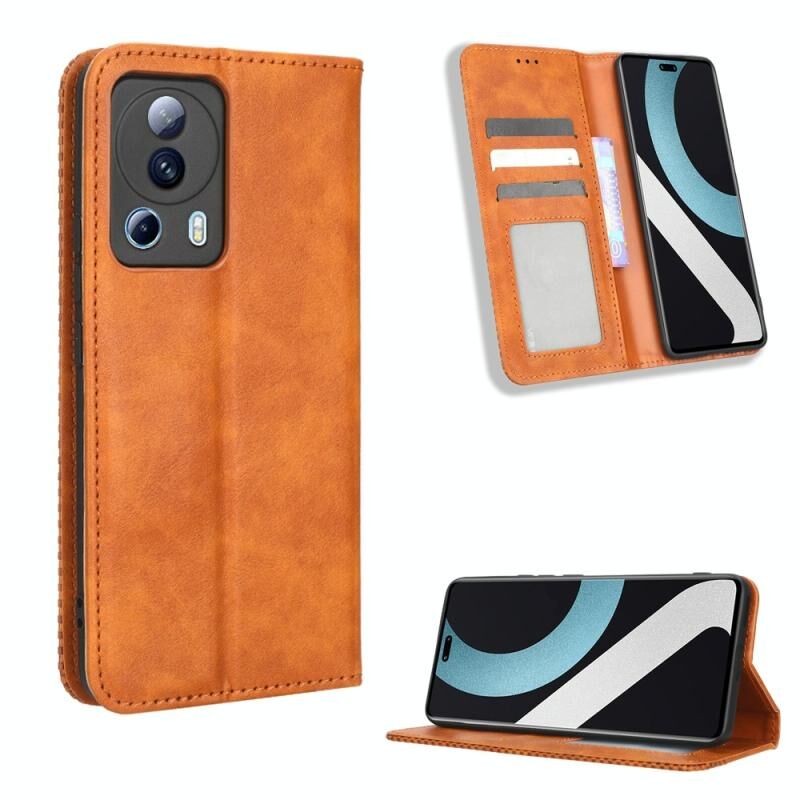 Για Xiaomi 13 Lite / Civi 2 5G Μαγνητική πόρπη Ρετρό υφή δερμάτινη θήκη τηλεφώνου (καφέ)