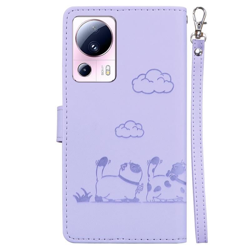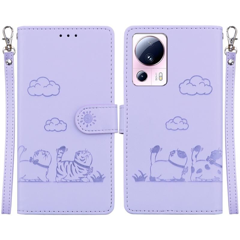 Θήκη τηλεφώνου από δέρμα με χαριτωμένες γάτες RFID για Xiaomi 13 Lite / Civi 2 (Πράσινο)