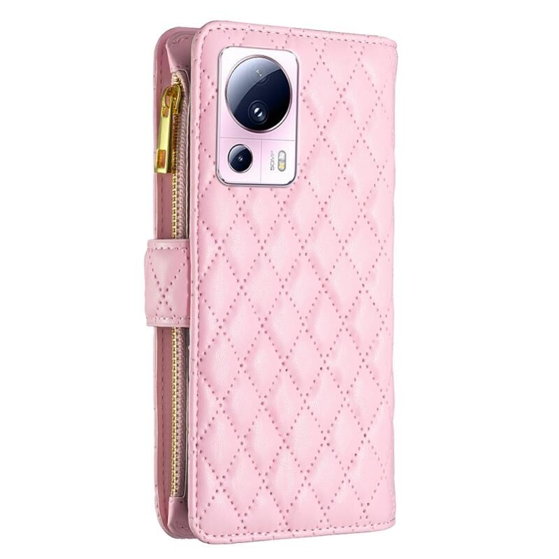 Για Xiaomi 13 Lite / Civi 2 Diamond Lattice φερμουάρ πορτοφόλι δέρμα Flip υπόθεση τηλεφώνου (ροζ)