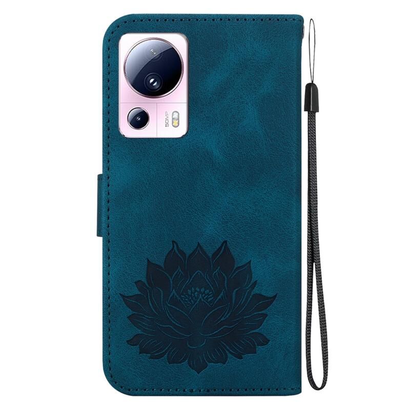 Για Xiaomi 13 Lite / Civi 2 Lotus ανάγλυφη δερμάτινη θήκη τηλεφώνου (σκούρο μπλε)
