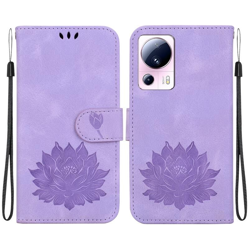 Για Xiaomi 13 Lite / Civi 2 Lotus ανάγλυφη δερμάτινη θήκη τηλεφώνου (μωβ)