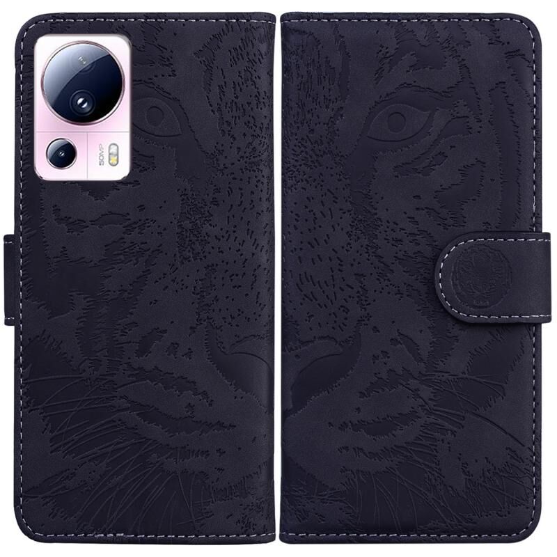 Θήκη τηλεφώνου από δέρμα με σχέδιο ανάγλυφου τίγρη για Xiaomi 13 Lite / Civi 2 (Μαύρο)