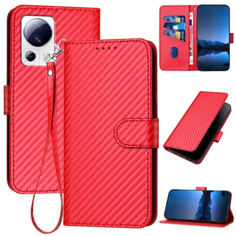 Για Xiaomi 13 Lite / Civi 2 YX0070 Carbon Fiber πόρπη δερμάτινη θήκη τηλεφώνου με κορδόνι (κόκκινο)