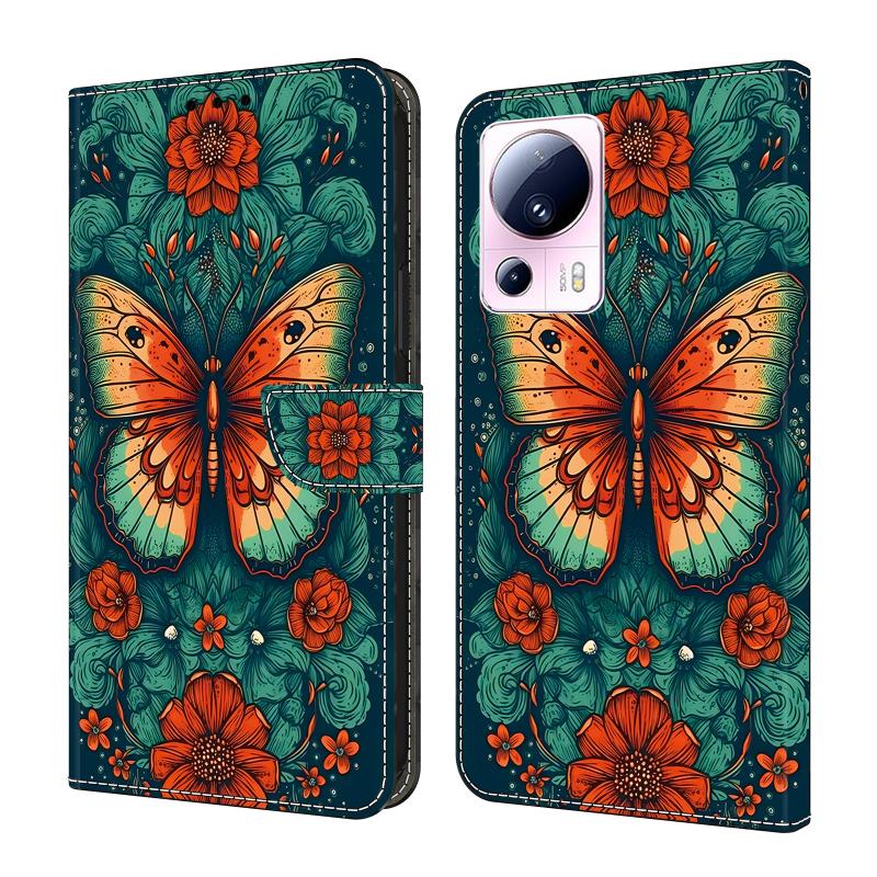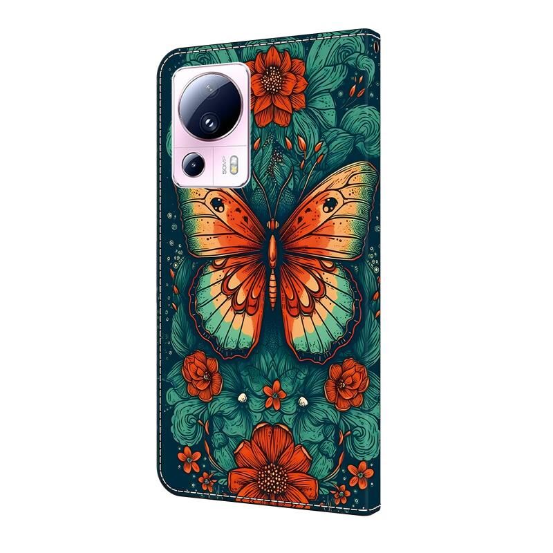 Θήκη τηλεφώνου από δέρμα κρυστάλλινης βαφής για Xiaomi 13 Lite (Λουλούδι Πεταλούδα)