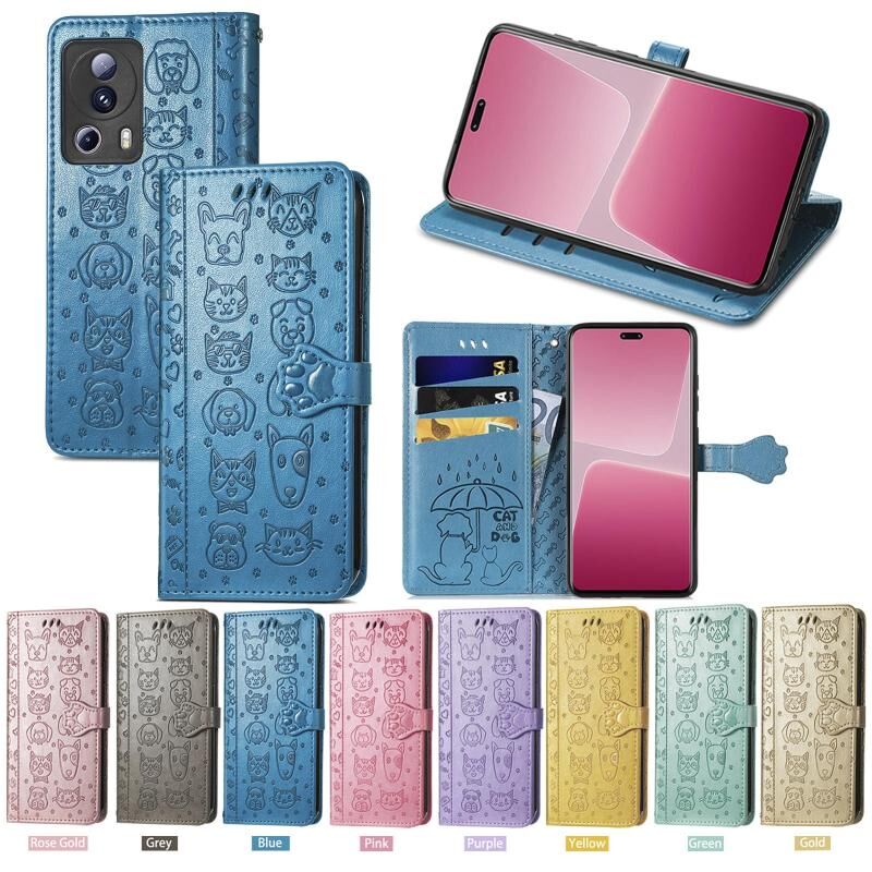 Θήκη τηλεφώνου από δέρμα με ανάγλυφα σχέδια γάτας και σκύλου για Xiaomi 13 Lite (Μωβ)