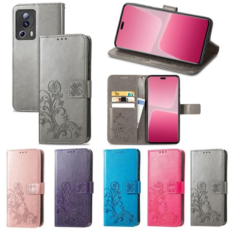 Για Xiaomi 13 Lite τετράφυλλο κούμπωμα ανάγλυφη πόρπη δερμάτινη θήκη τηλεφώνου (μπλε)