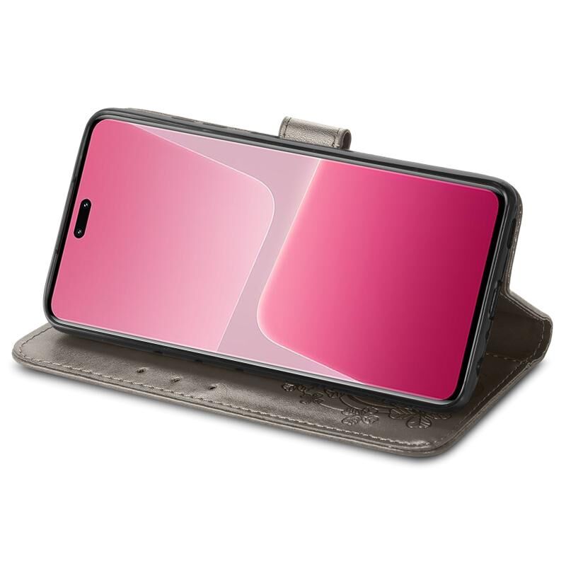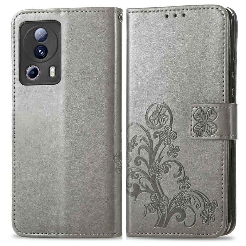 Για Xiaomi 13 Lite τετράφυλλο κούμπωμα ανάγλυφο πόρπη δερμάτινη θήκη τηλεφώνου (γκρι)
