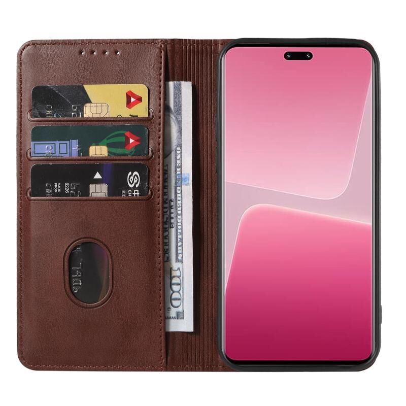 Για Xiaomi 13 Lite μαγνητικό κλείσιμο δερμάτινη θήκη τηλεφώνου (καφέ)