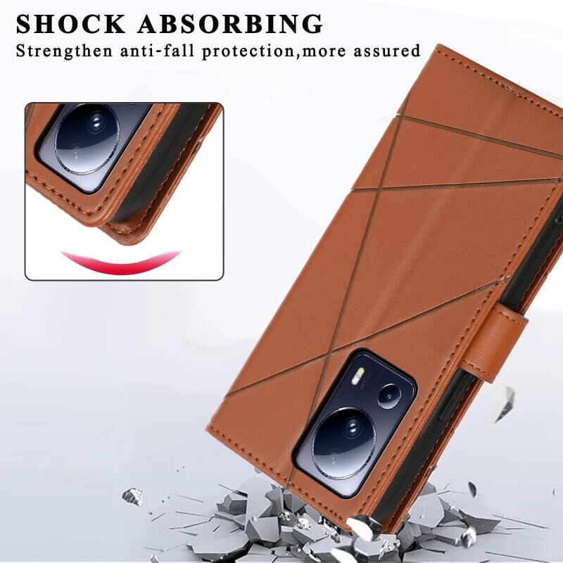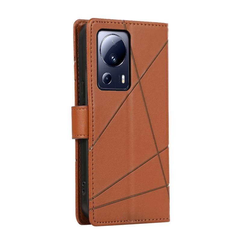 Θήκη τηλεφώνου για Xiaomi 13 Lite από γνήσιο δέρμα PU με ανάγλυφη υφή και λεπτομέρειες γραμμής (Μπλε)