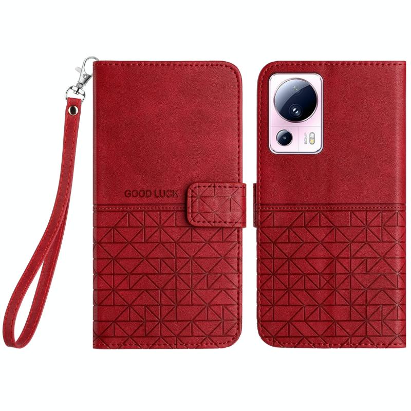 Θήκη δερμάτινη με κορδόνι για Xiaomi 13 Lite με υφή ρόμβου (Κόκκινο)