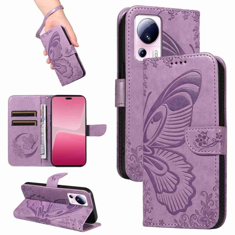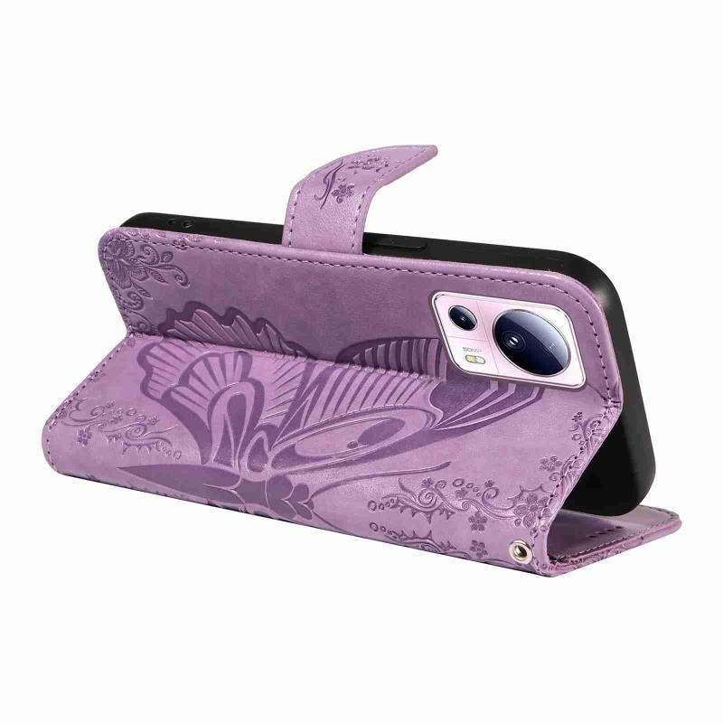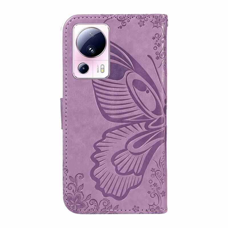 Θήκη τηλεφώνου από δέρμα με ανάγλυφο σχέδιο πεταλούδας Swallowtail για Xiaomi 13 Lite (Κόκκινο)