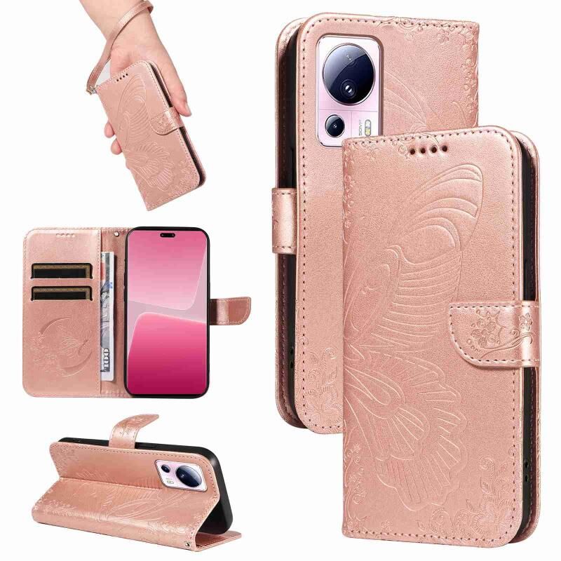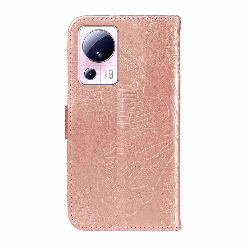 Θήκη τηλεφώνου από δέρμα με ανάγλυφο σχέδιο πεταλούδας Swallowtail για Xiaomi 13 Lite (Κόκκινο)
