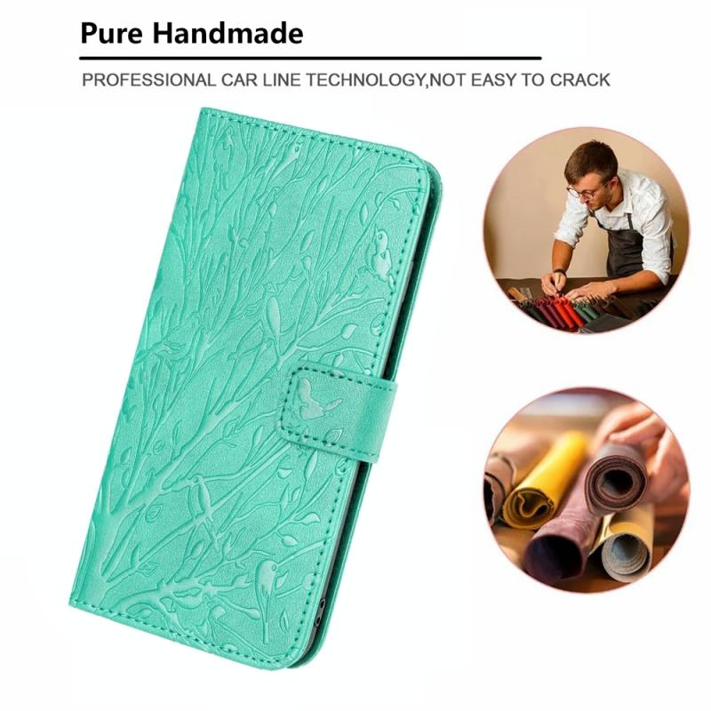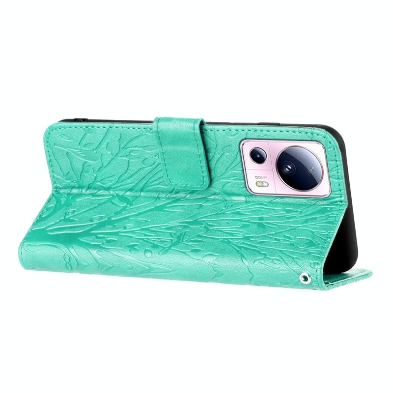 Θήκη δερμάτινη με ανάγλυφο σχέδιο πουλιών και δέντρων για Xiaomi 13 Lite (Πράσινο)
