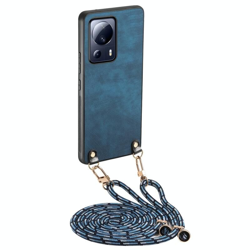 Για Xiaomi 13 Lite εκλεκτής ποιότητας δέρμα PC πίσω κάλυμμα τηλέφωνο υπόθεση με λουράκι σταυρού (μπλε)