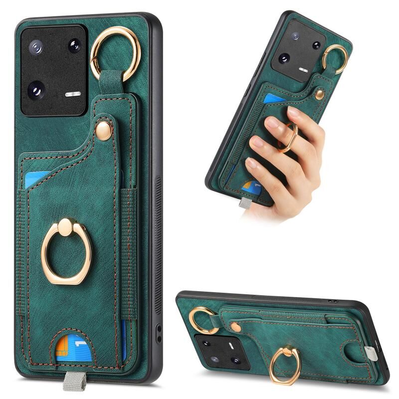 Για Xiaomi 13 Pro 5G Ρετρό δέρμα αίσθηση δαχτυλίδι κάρτα τσάντα υπόθεση τηλεφώνου με Hang Loop (πράσινο)