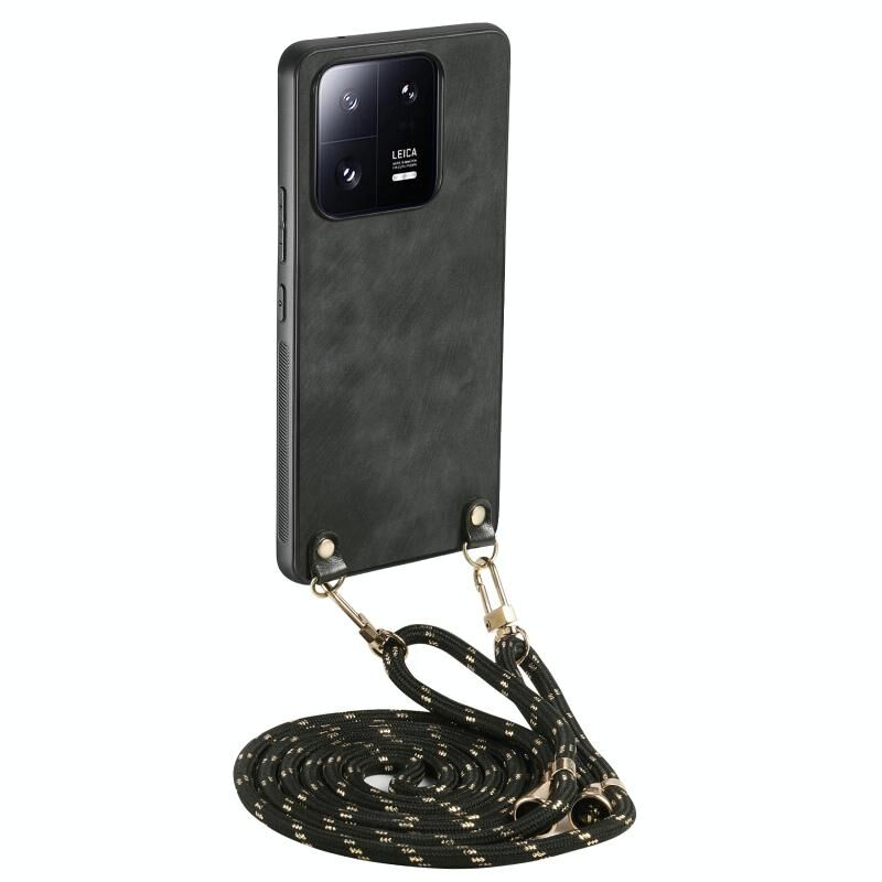 Για Xiaomi 13 Pro 5G εκλεκτής ποιότητας δέρμα PC πίσω κάλυψη υπόθεση τηλεφώνου με λουράκι σταυρού (μαύρο)