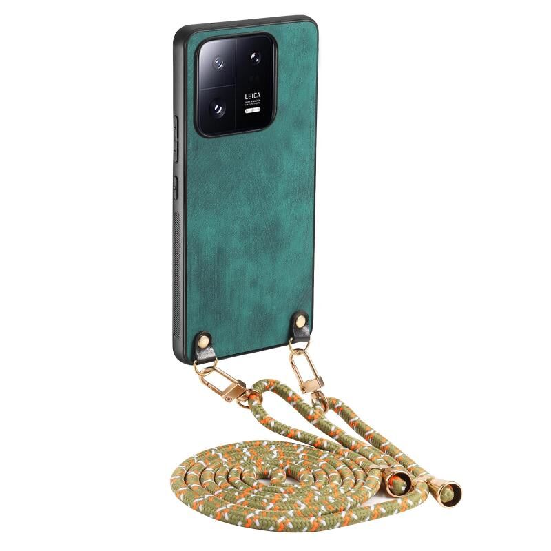 Για Xiaomi 13 Pro 5G εκλεκτής ποιότητας δέρμα PC πίσω κάλυψη υπόθεση τηλεφώνου με λουράκι σταυρού (πράσινο)