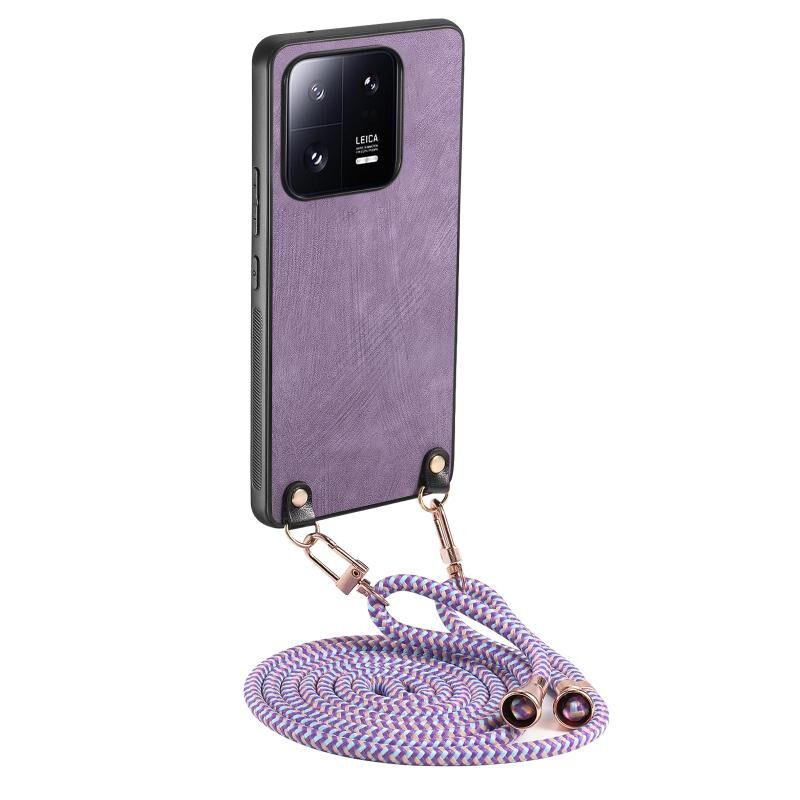 Για Xiaomi 13 Pro 5G εκλεκτής ποιότητας δέρμα PC πίσω κάλυψη υπόθεση τηλεφώνου με λουράκι σταυρού (μωβ)