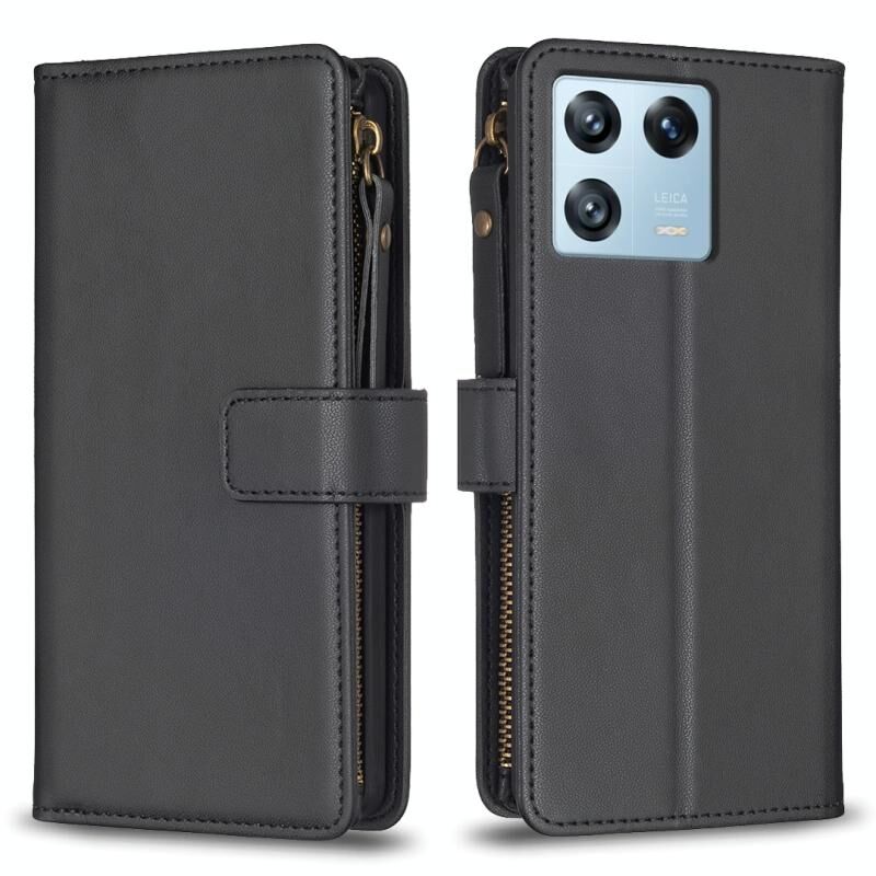 Για Xiaomi 13 Pro 9 υποδοχές κάρτας φερμουάρ πορτοφόλι δέρμα Flip υπόθεση τηλεφώνου (μαύρο)