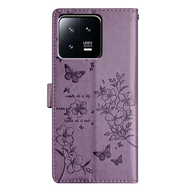 Θήκη τηλεφώνου από δέρμα με πεταλούδες και λουλούδια για Xiaomi 13 Pro (Μαύρο)
