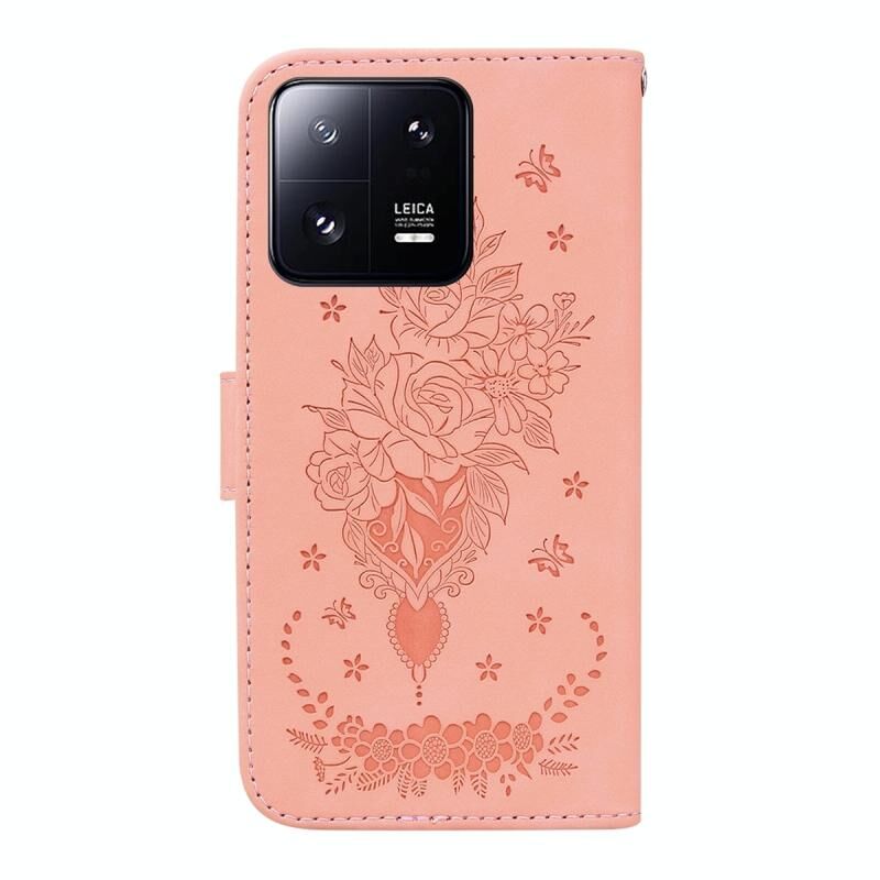Για Xiaomi 13 Pro Πεταλούδα Rose ανάγλυφο δέρμα υπόθεση τηλεφώνου (ροζ)