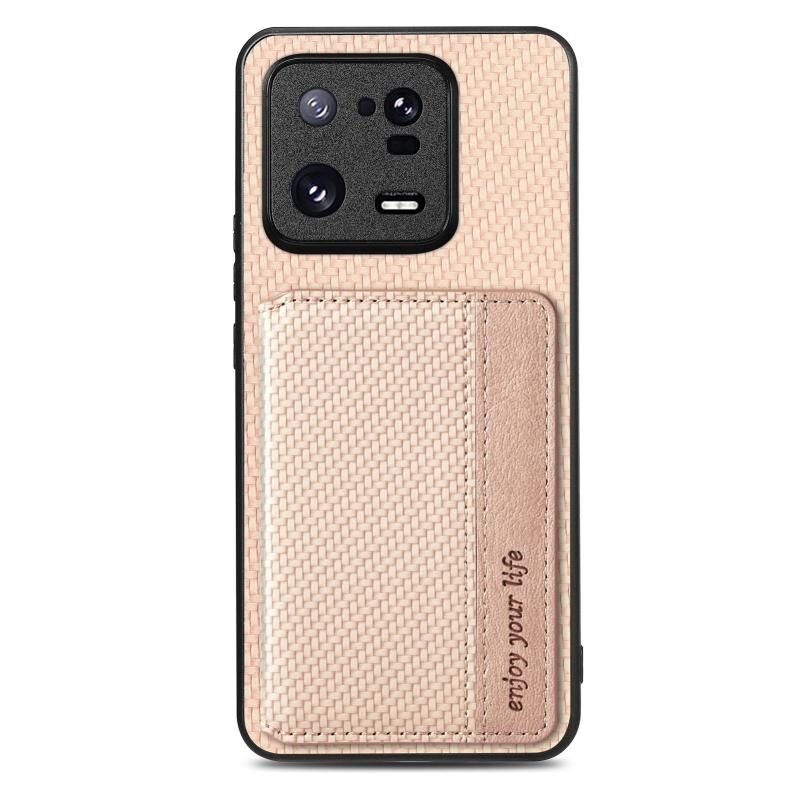 Για Xiaomi 13 Pro Carbon Fiber μαγνητική κάρτα τσάντα υπόθεση τηλεφώνου (χακί)