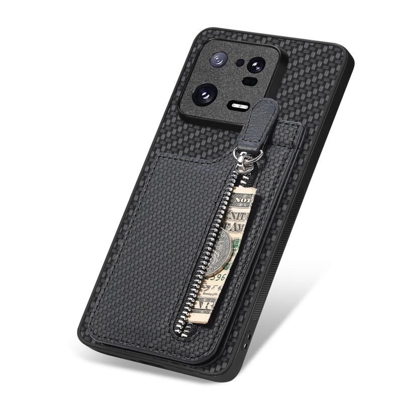 Για Xiaomi 13 Pro Carbon Fiber Κάθετη Flip φερμουάρ τηλέφωνο υπόθεση (Μαύρο)