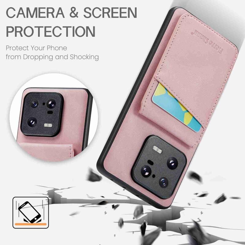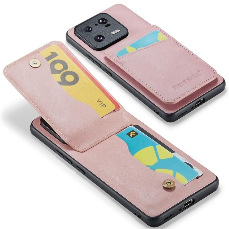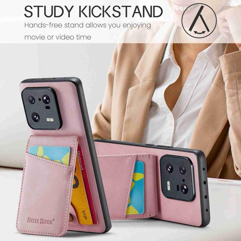 Για Xiaomi 13 Pro Fierre Shann Crazy Horse Card Holder πίσω κάλυμμα PU υπόθεση τηλεφώνου (ροζ) (FIERRE SHANN)