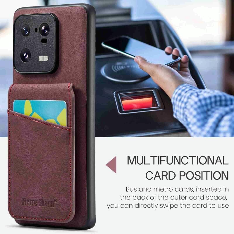 Για Xiaomi 13 Pro Fierre Shann Crazy Horse Card Holder πίσω κάλυμμα PU υπόθεση τηλεφώνου (κόκκινο κρασί) (FIERRE SHANN)