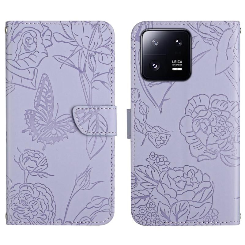 Για Xiaomi 13 Pro HT03 δέρμα αίσθηση πεταλούδα ανάγλυφο Flip υπόθεση τηλεφώνου δέρμα (μωβ)