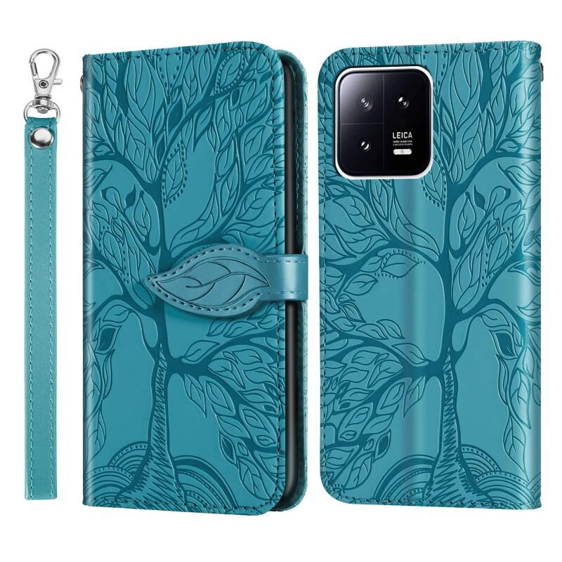 Για Xiaomi 13 Pro Life Tree ανάγλυφο μοτίβο δερμάτινη θήκη τηλεφώνου (μπλε)
