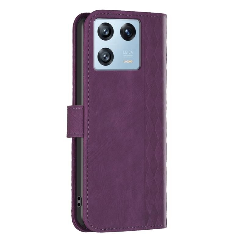 Για Xiaomi 13 Pro καρό ανάγλυφη δερμάτινη θήκη τηλεφώνου (μωβ)