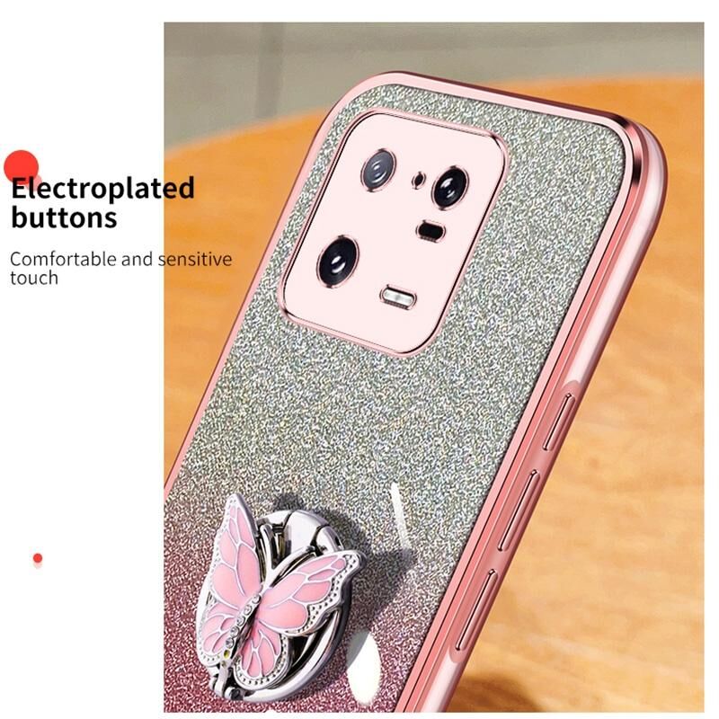 Θήκη κινητού τηλεφώνου TPU με επιμετάλλωση, διαβαθμισμένη λάμψη και σχέδιο πεταλούδας για Xiaomi 13 Pro (Ροζ)