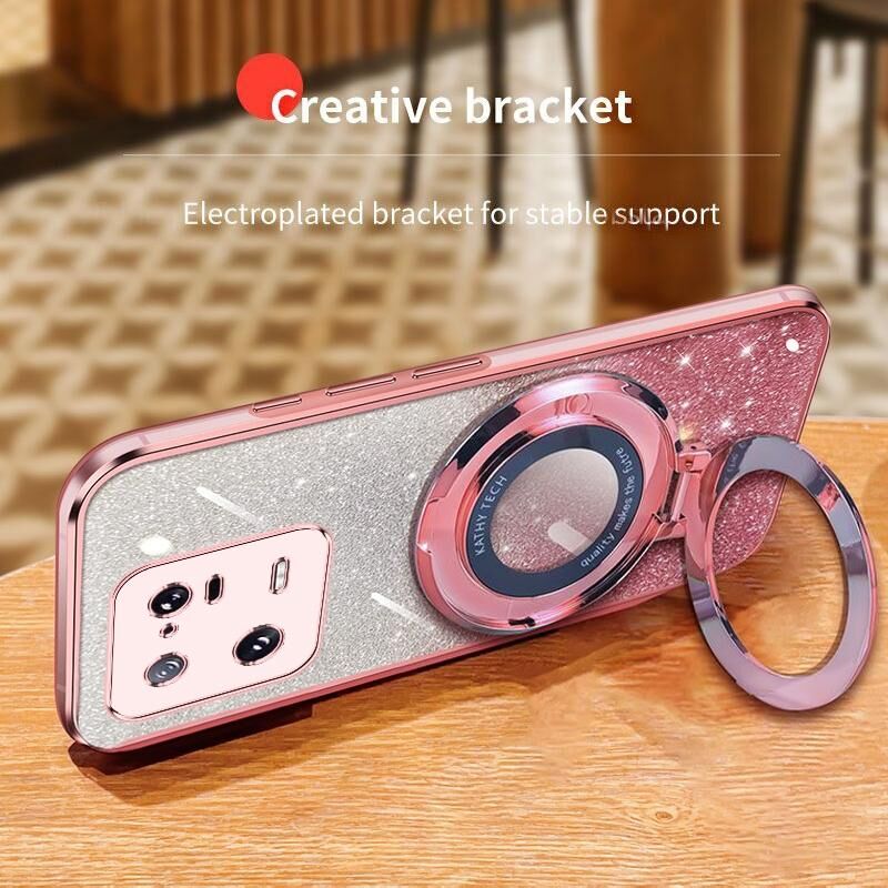 Για Xiaomi 13 Pro Επιμεταλλωμένο βαθμιδωτή Glitter στρογγυλή θήκη TPU τηλέφωνο κάτοχος (ρόζ)