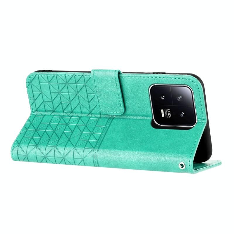 Θήκη δερμάτινη με κορδόνι για Xiaomi 13 Pro με υφή ρόμβου (Πράσινο)