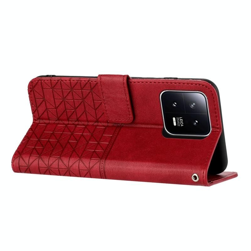 Θήκη δερμάτινη με κορδόνι για Xiaomi 13 Pro με υφή ρόμβου (Κόκκινο)