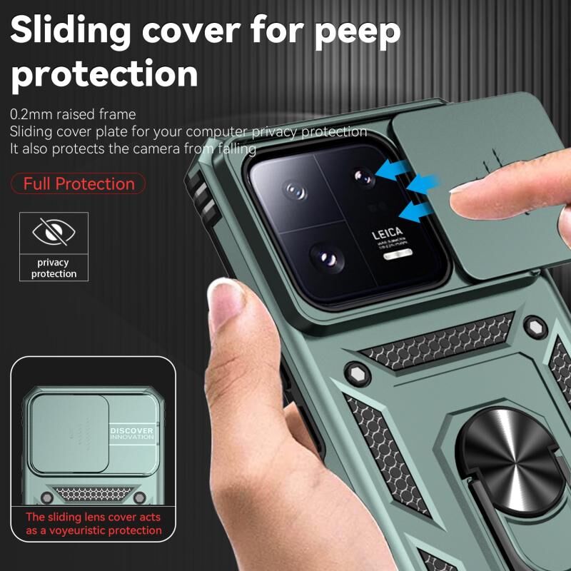 Για Xiaomi 13 Pro συρόμενη Camshield κάτοχος υπόθεση τηλεφώνου (σκούρο πράσινο)