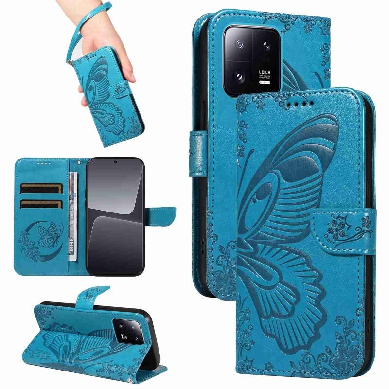 Θήκη τηλεφώνου από δέρμα με ανάγλυφο σχέδιο πεταλούδας Swallowtail για Xiaomi 13 Pro (Μπλε)