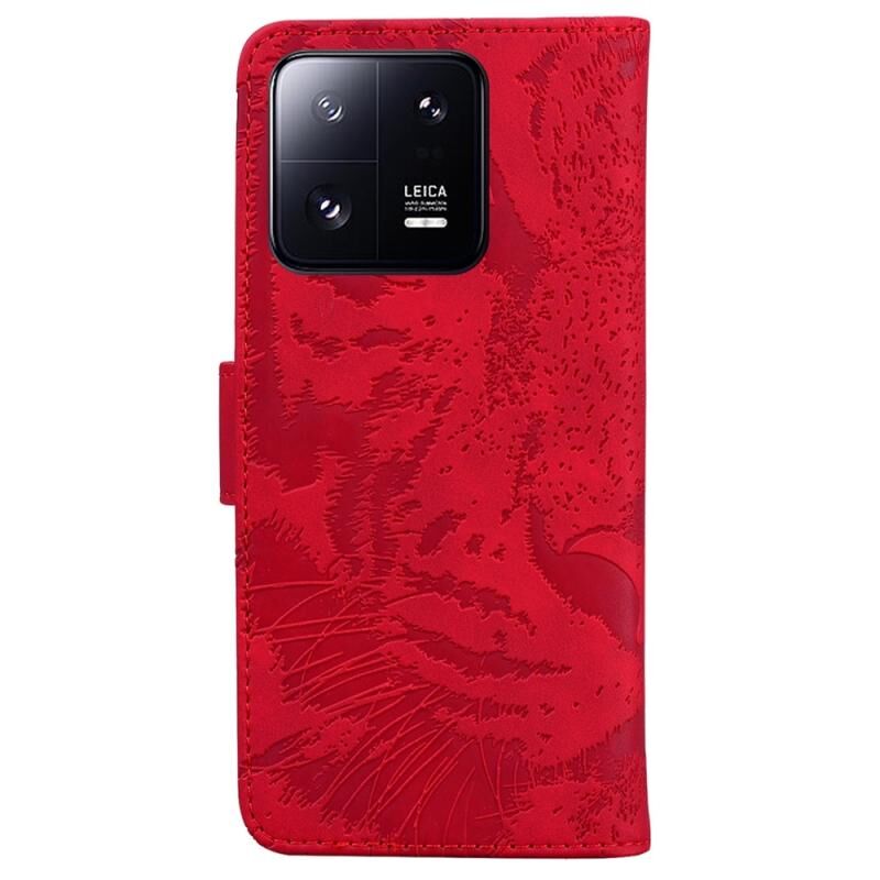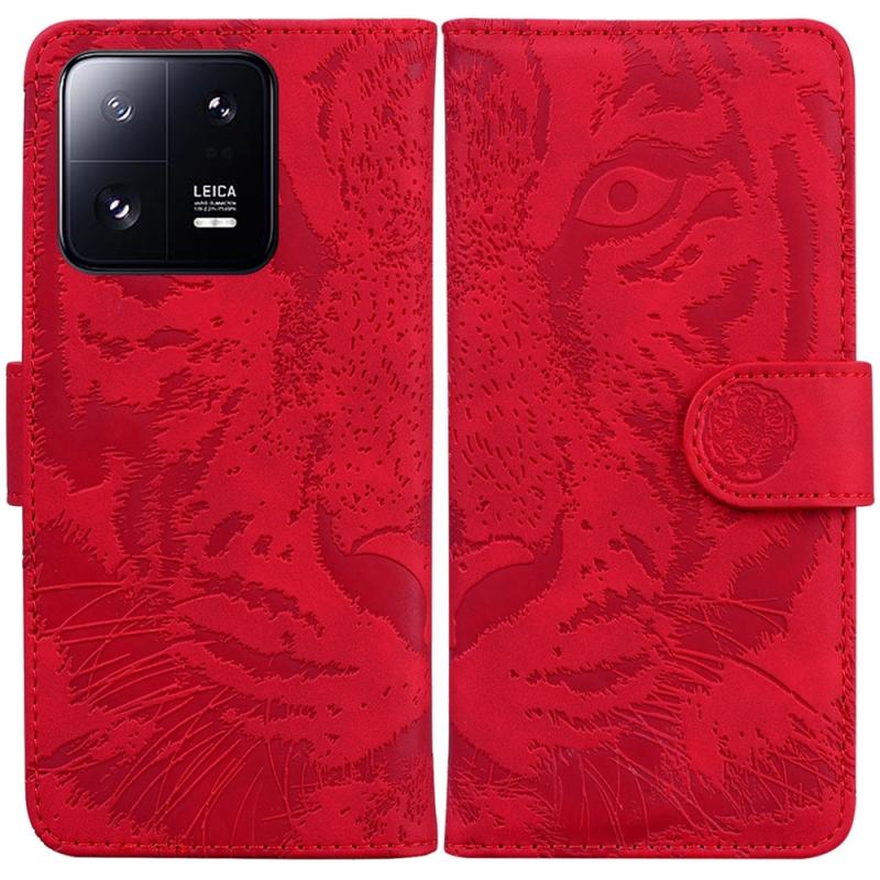 Θήκη δερμάτινη με ανάγλυφο σχέδιο τίγρης για Xiaomi 13 Pro (Κόκκινο)