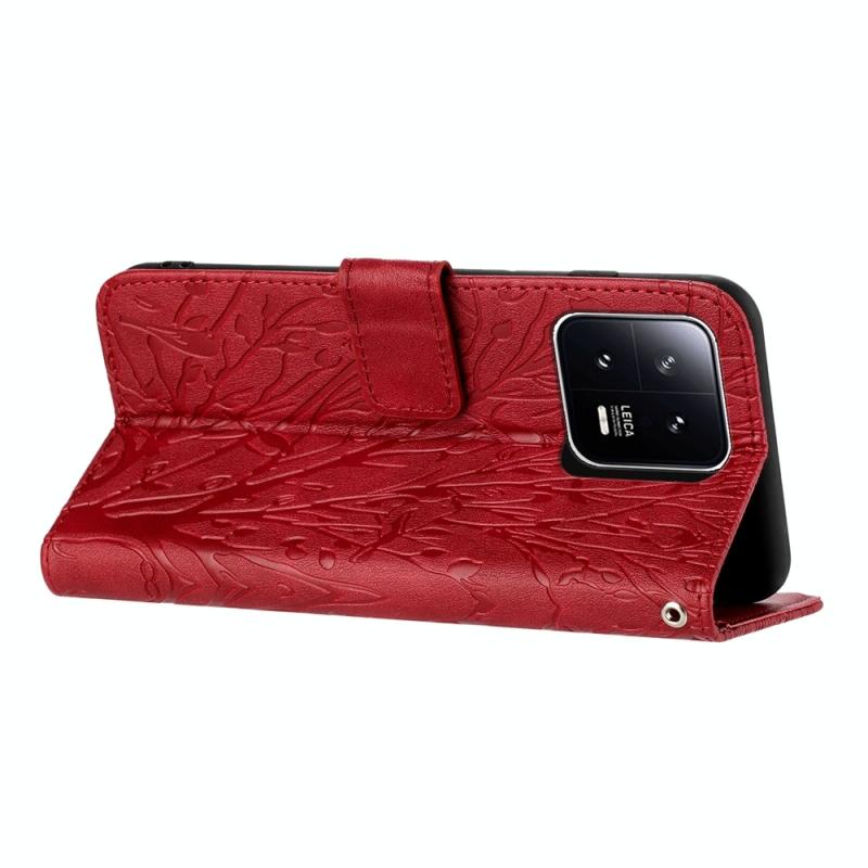 Θήκη δερμάτινη με ανάγλυφο σχέδιο δέντρων και πουλιών για Xiaomi 13 Pro (Κόκκινο)