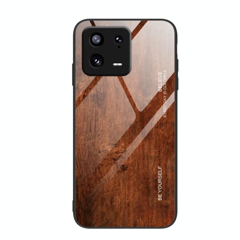 Για Xiaomi 13 Pro Wood Grain Glass TPU τηλέφωνο υπόθεση (σκούρο καφέ)