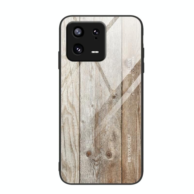 Για Xiaomi 13 Pro Wood Grain γυαλί TPU τηλέφωνο υπόθεση (γκρι)